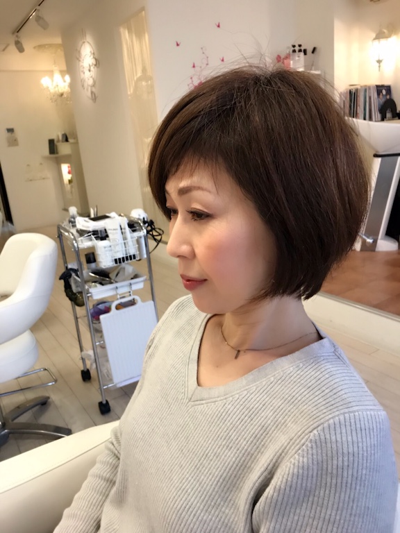 あきこさん、おかえり〜!!トップにボリューム満点大人ショートでくせ毛カバー♪2018/01/10