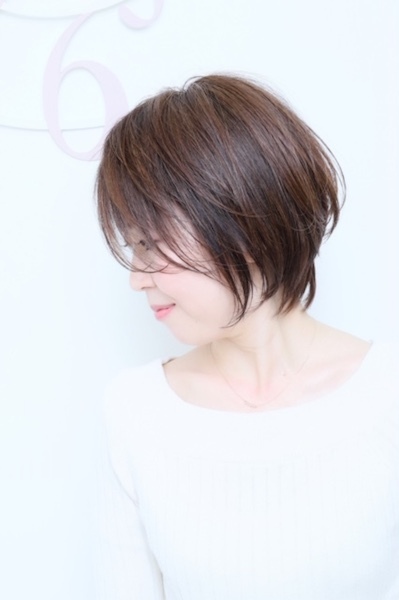 あきこさん、おかえり〜!!トップにボリューム満点大人ショートでくせ毛カバー♪2018/01/10