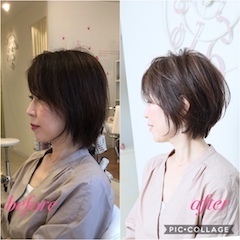 あきこさん、おかえり〜!!トップにボリューム満点大人ショートでくせ毛カバー♪2018/01/10