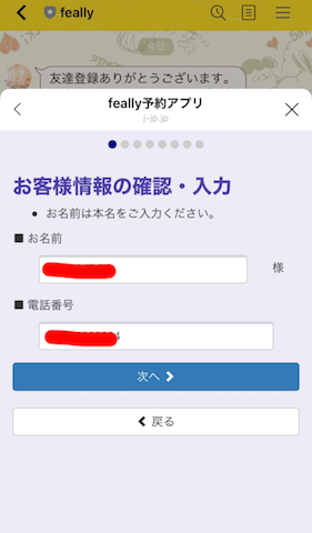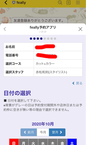 5、「コース選択」、「選択スタッフ」、「日付の選択」