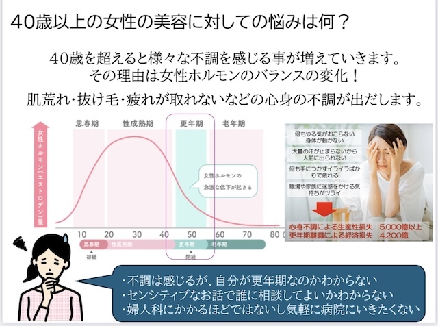 女性の更年期に対しての悩みをケアできるよう、4月21日から2ヶ月かけてスタッフ2名が