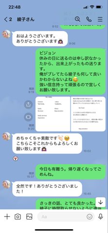 綾子「私は赤松さんの想いをしっかり理解してみんなに落とし込むポジションです。付き合いが長いのである程度の事は言葉で言われなくてもわかっているつもりです(^。^)」
