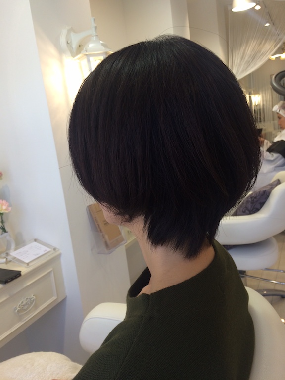 あきこさん、おかえり〜!!トップにボリューム満点大人ショートでくせ毛カバー♪2018/01/10