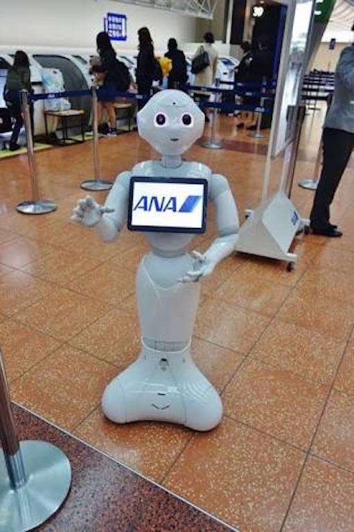 那覇空港の手荷物検査入口にはペッパー君がいて