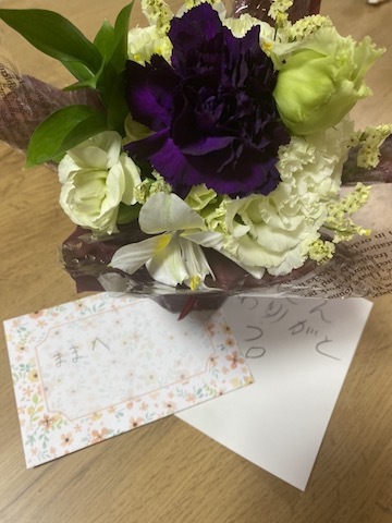 - お兄ちゃんが自分のお小遣いでサプライズでくれたお花と下の子からのお手紙です。