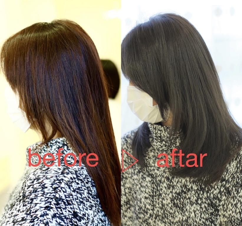 白髪は染める前提で『カラーは落ち着けたいけど外の光に当たった時には透明感が欲しい』を叶えたメニュー。