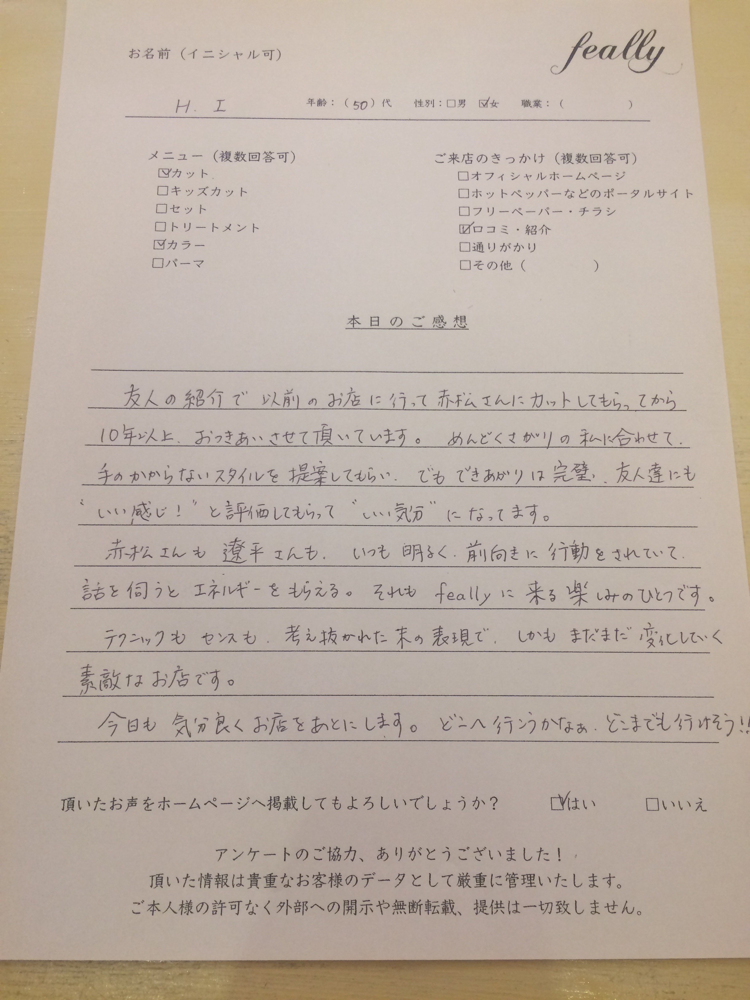 お名前H.I 様